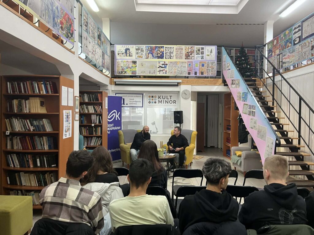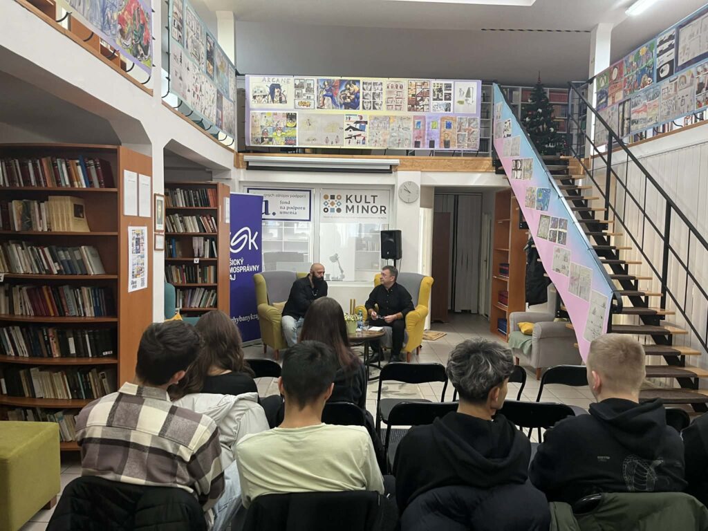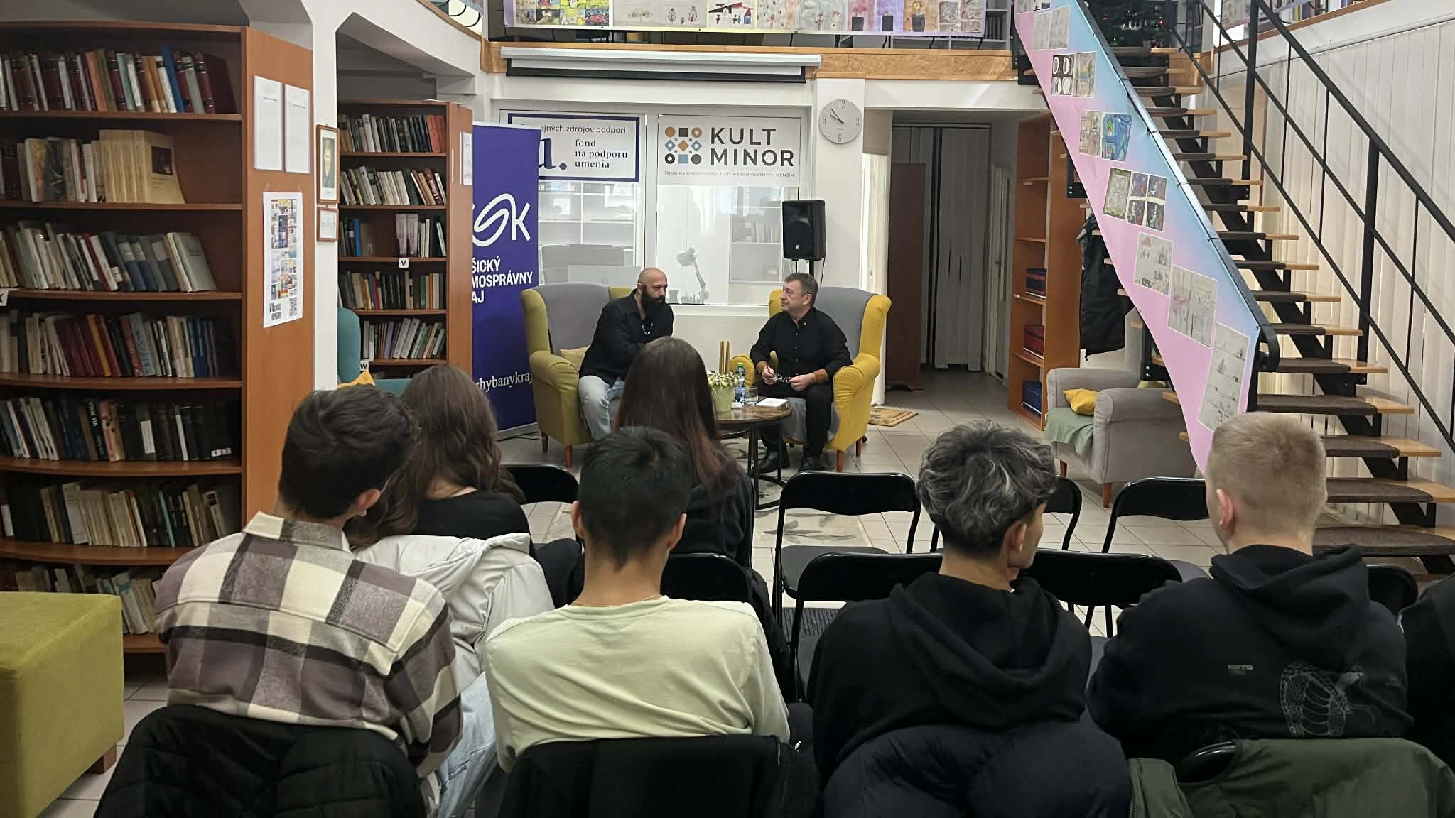 V stredu (10. 12. 2025) prijala Stredná odborná škola v Kráľovskom Chlmci pozvanie do mestskej knižnice, kde mali žiaci III.A triedy možnosť stretnúť sa s mnohostranne nadaným umelcom Dušanom Onodym z Košíc. Triedu sprevádzala Mgr. Simona Krištofová.